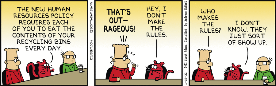 Dilbert - 2022-01-15 - Catbert Doesn't Make The Rules DIR Previous DIR Next IMG 2022-01-15 Tags :