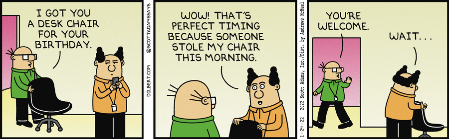 Dilbert - 2022-01-24 - Boss Gets A Birthday Chair DIR