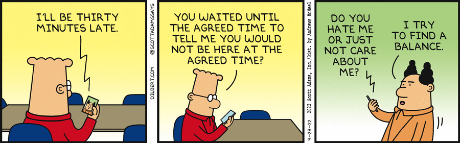 Dilbert - 2022-09-28 - Boss Is Late DIR