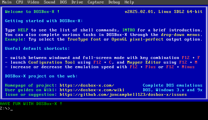 This opens an initial DOSBox-X window.