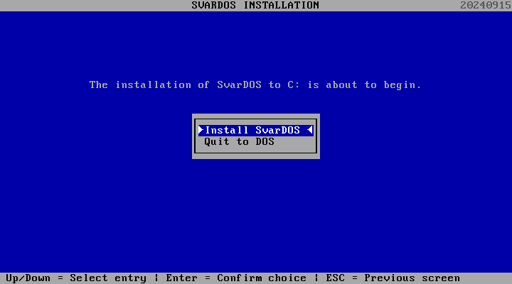 Download the SvarDOS stable build (20240915) and package ISO.