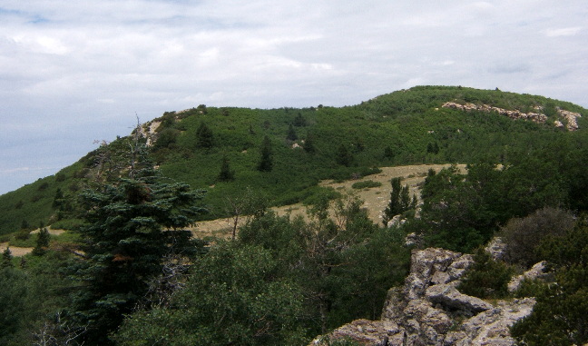 ridge a few hundred yards south of the summit, at approx. 9600 ft.