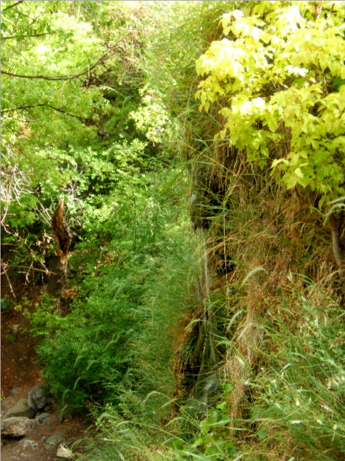 trail is barely running. Here's where the stream it feeds crosses the trail...